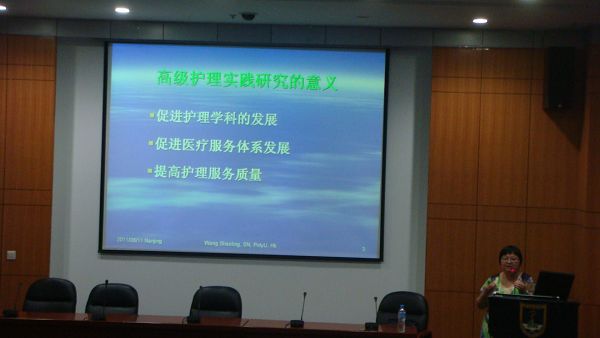 黄金月教授从高级护理实践的发展及价值、高级实践护士的培育、高级护理实践与理论、个体化的高级护理实践、群体化的高级护理实践等方面展示了近年来APN在国内外取得的进展。黄金月教授的博士生王少玲女士对高级护理实践研究现状和奥马哈系统的应用做了介绍。