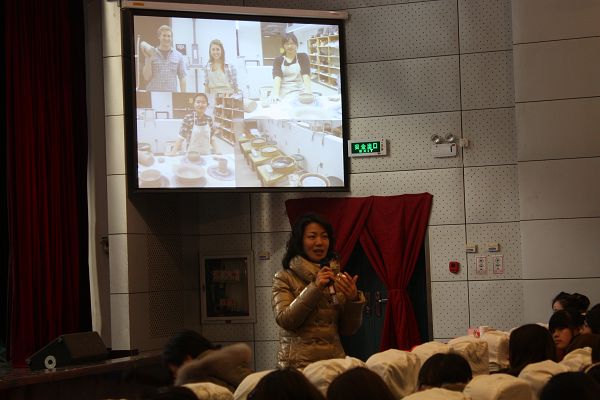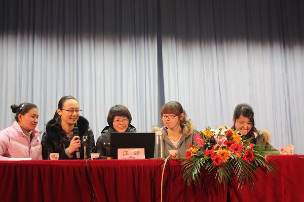 随后,汪璐老师与四位同学在温馨活跃的气氛中为大家讲述了在美国的点点滴滴以及各自的心得体会。汪璐老师说,当地的师生特别热情,特地用汉语拼音做了“欢迎中国南京学生”的标牌,并准备了丰富的中国食材,举办各式各样的欢迎晚会,款待远到而来的她们,她们特别意外同时也被异国学生的小细节深深感动了。由于访美时间正值中国春节,IWU的师生们为了让同学们减轻思乡之苦,精心举办了庆春节联欢会,让身处他乡的老师和同学们不感到孤独。
