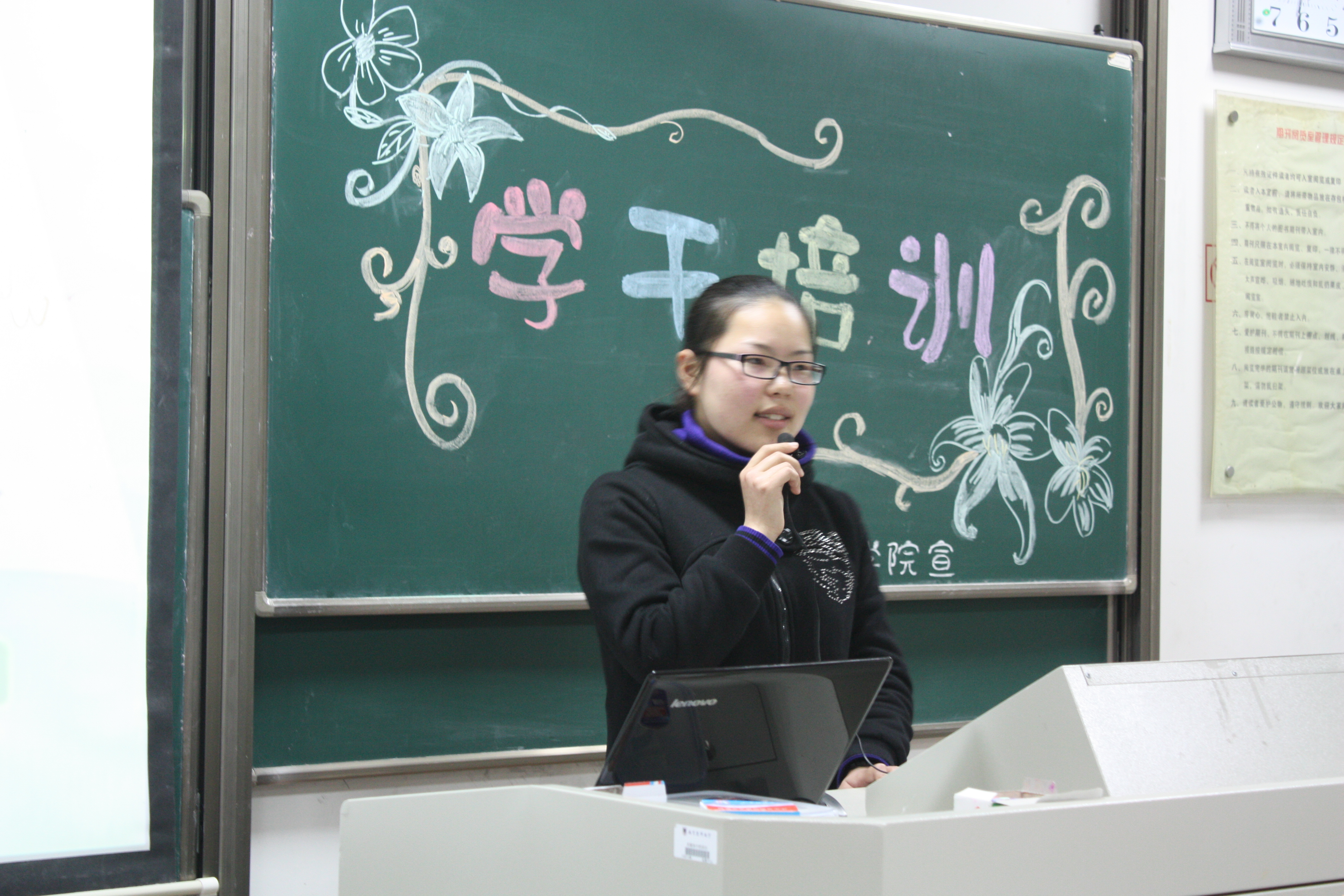 首先,团总支副书记顾秋雨同学全面地讲述了该如何做一名干事,并且着重强调了干事的“职责”。她指出作为学生干部,自身的责任大于职能,“严格律己”是每一个学生干部都需要认真去执行的第一项工作。紧接着便是前任自律部部长范乐乐同学以自身为例---因未能严格要求自己而在工作上懈怠,学习上松懈,以至于学习成绩不理想并且本学期辞去了部长一职---警惕同学们学习要自觉,要有纪律性和组织性。接下来和同学们分享工作经验的是副部代表---李嘉玉同学,她从“起、承、转、合”四个方面仔细地分析了自己对干事工作的理解。她认为,副部在部门中起到了桥梁的作用,“准确传达,独立思考,知人善用,统筹兼顾”。李嘉玉同学的一席话让大家受益颇深。最后作为班长和团支书优秀代表的葛洁荣同学和刘洁琼同学也分别跟大家分享了她们的工作经验。葛洁荣同学以“以身作则、学会变通、责任心强、严格自律”总结了作为班长所应该做到的职责。而刘洁荣同学则以“提高自身素养”说明了学生干部自身的修养学习的重要性。此次培训活动在击鼓传花游戏中愉快地结束了。