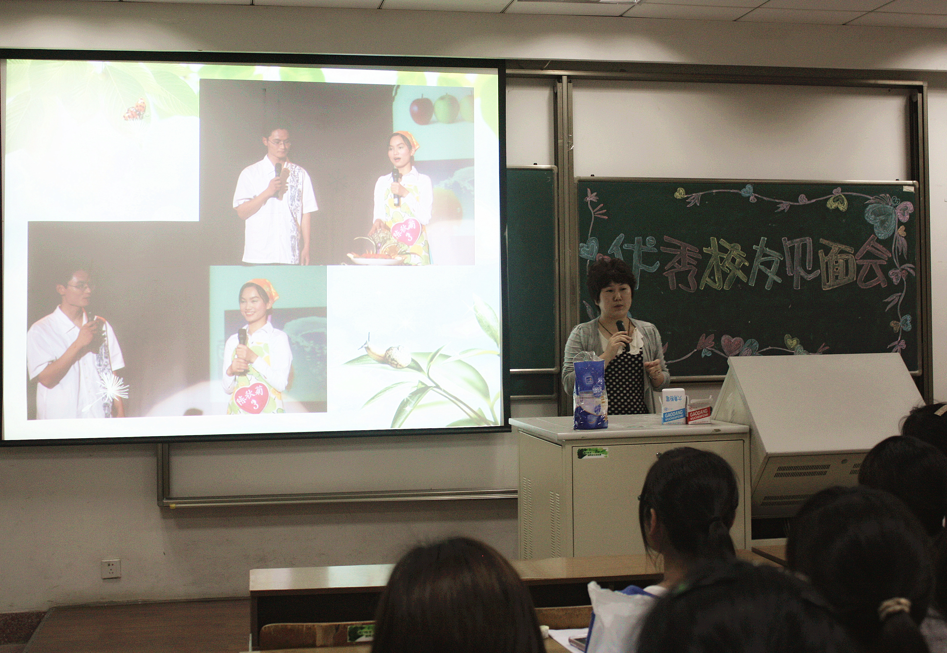 2013年5月15日晚,九游(中国)在B106教室举办了一场优秀校友见面会。参加此次见面会的有校友王家麟和陈秋菊,徐晔星老师和吴菲老师以及各班同学。