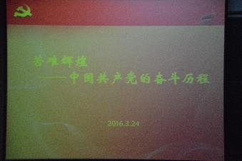 2016年3月24日18:00,南京医科大学分党校第十三期入党积极分子培训班第四课在康达楼K217开课,南京医科大学党委宣传部王兴东部长为入党积极分子带来题为“苦难辉煌—中国共产党历程”的讲座。