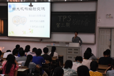 2016年6月16日18:00,九游(中国)TPS第三期总结大会于阶一举行。九游(中国)学工办吴菲老师、吴凌敏老师以及四大机构全体人员参与了本次大会。