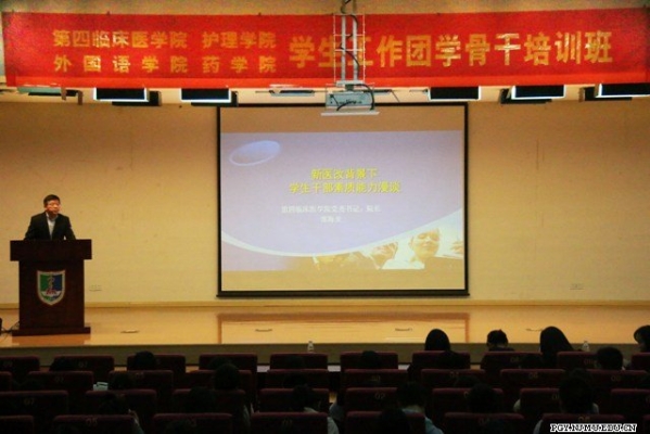 四院骨干培训专题讲座第三讲于11月7日17:40在至诚楼3楼报告厅举行,此次讲座由第四临床医学院党委书记、院长邵海亚主讲,参加此次讲座的嘉宾有药学院副书记、副院长李正关,第四临床医学院副书记、副院长盛彤彤,药学院学工办辅导员顾莹,九游(中国)辅导员吴菲以及外国语学院辅导员仓伟。这次讲座围绕做个好的学生干部、如何提高学生干部执行力、新医改背景下学生干部的素养修炼三个部分展开。