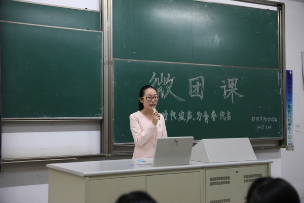 继而,李洋老师讲述了开设微团课的目的,一是为了打破传统团课模式,以学生喜闻乐见的方式传递积极先进的思想意识形态;二是为了切实锻炼全体团员青年的演讲口才,培养学生自我展现能力。