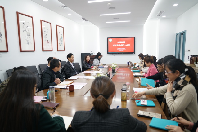 扩大会议由党总支书记林炜主持。会上就近期学院党政工作做了通报。科研方面,组织开展了2019年国自然申报工作启动会;人才培养方面,“本研一体化”学生管理全面开展,后续拟开展特色人才培养模式改革;师资队伍建设方面,推进院院融合,与附院护理部深入交流,寻求合作,资源共享,达成构建共享共赢的合作模式;教育教学方面,通报了教学评教周的开展情况及中期教学检查工作的布置;社会服务方面,规范了各类社会合作的模式和要求。