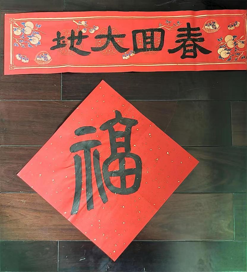 两幅春联确定以中国红为作品主色调,这一色彩深深扎根于春节文化之中,它所蕴含的热烈与喜庆,能够瞬间唤起人们对春节的情感共鸣。