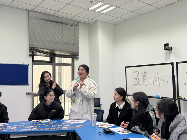 随后,进入深度自我剖析环节。何欢老师借助“人生自画像”帮助同学们提高自我认知和挖掘内心潜能。同学们自行挑选了“过去的我”“现在的我”和“未来的我”画像,勇敢分享成长烦恼、专业抉择难题,正面面对自我认知困惑。同学们在互助氛围中,共情理解,迷茫渐散。活动全程,何欢老师穿梭在同学之中,敏锐捕捉情绪,适时给予个性化指导,让每位同学收获专属成长启示。