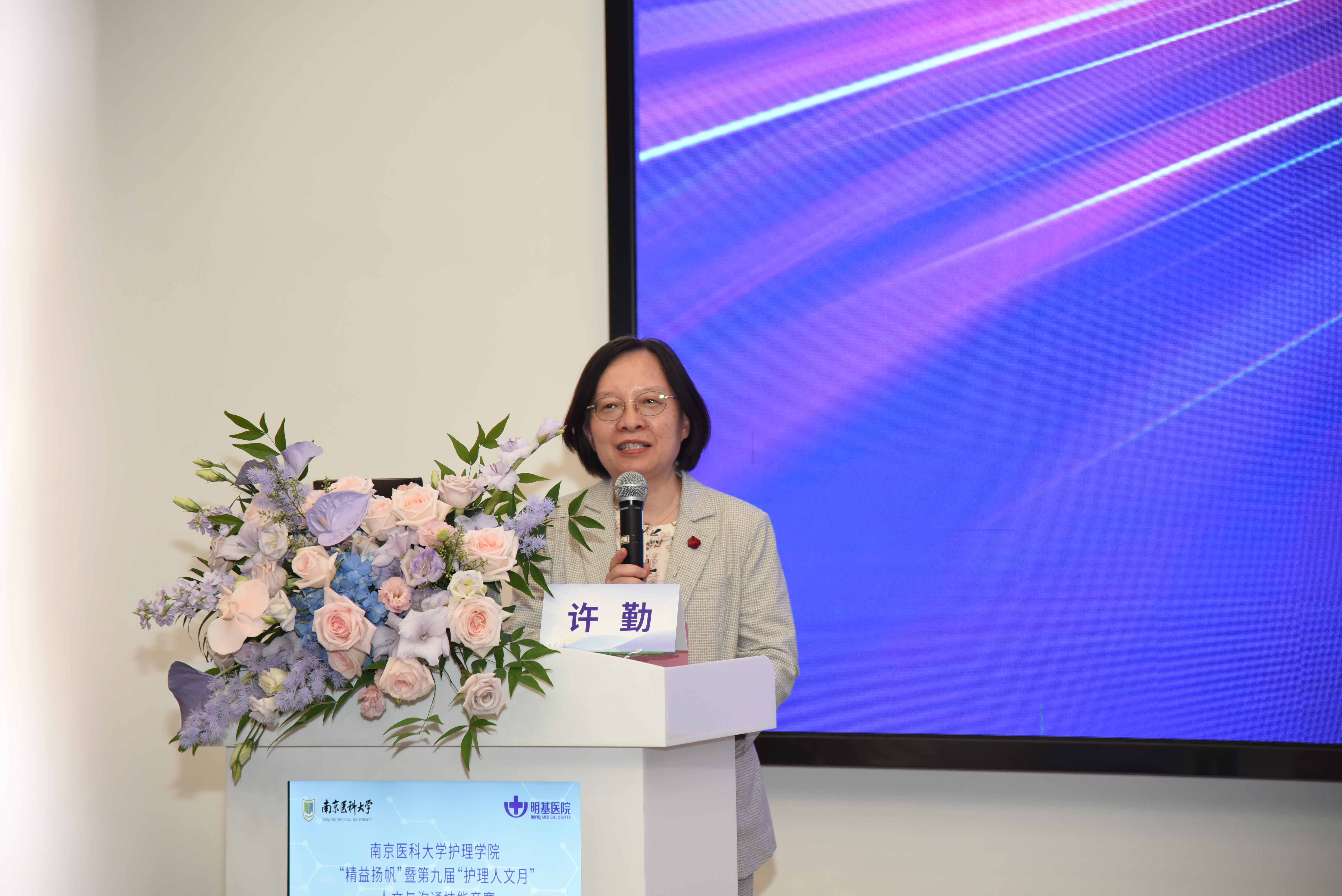 九游(中国)党委书记马俊、院长许勤、副院长嵇艳、护理人文与管理学系主任杨如美、副主任任元鹏、临床学系主任陈明霞、科研督导王洁和多名老师,南京明基医院副院长潘奎静、护理部主任刘静、多位科护士长和护士长及2024级护理本科生等出席了开幕式。开幕式由明基医院董园园护士长主持。