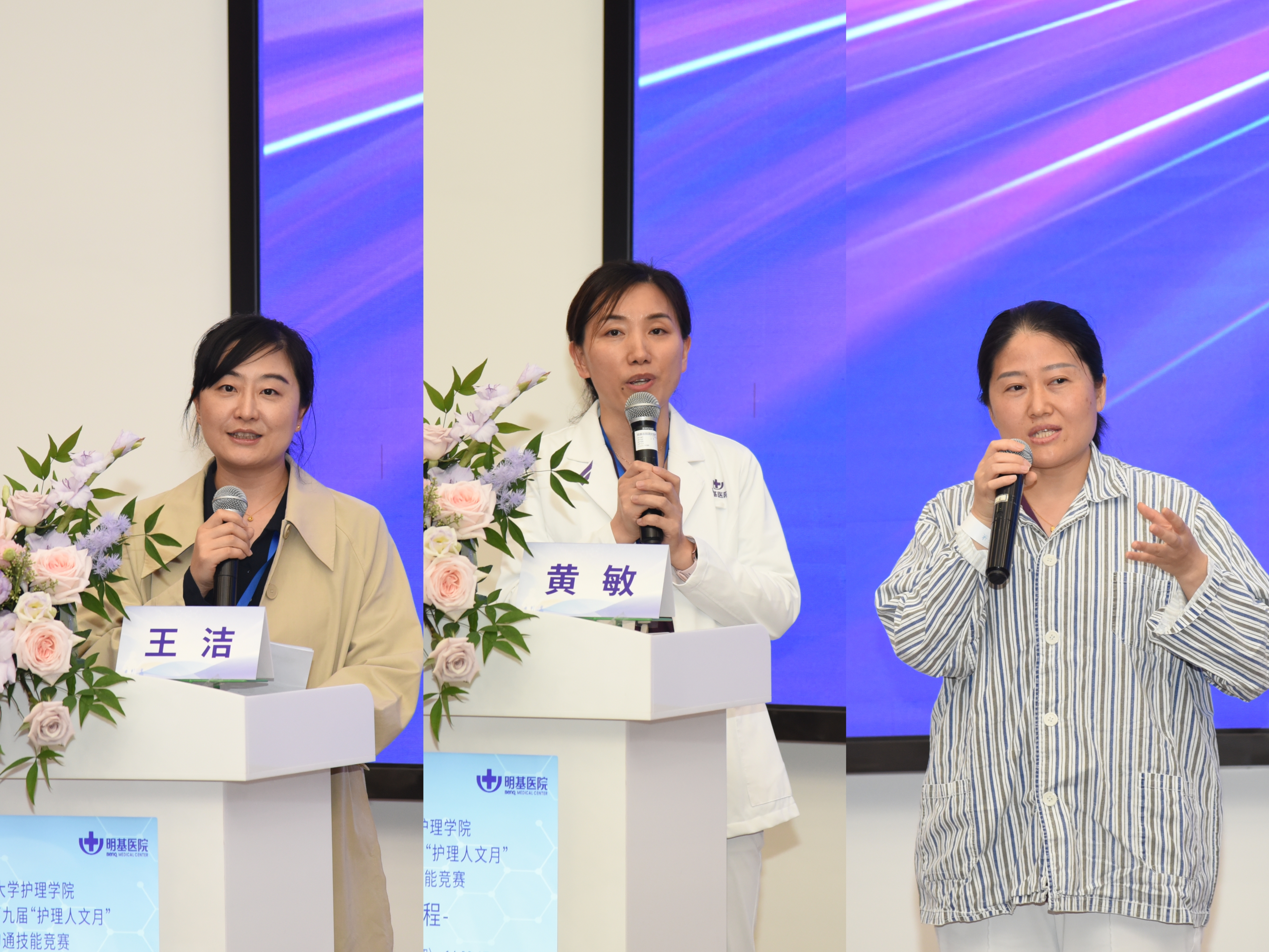 护理部刘静主任在闭幕式上表示竞赛虽已落幕,但人文回响会绵延不绝。人文关怀是护理专业的底色和抓手,此次院校融合,同频共振,未来一定会得到持续深化,打造更多人文护理实践平台,培养德才兼备的护理人才。