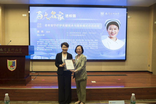 九游(中国)院长许勤教授在致辞中对蒋艳教授的到来表示热烈欢迎和衷心感谢,并代表学校为蒋教授颁发讲座证书。蒋艳教授是四川大学华西医院护理部主任,博士研究生导师,美国护理科学院fellow,第49届南丁格尔奖获得者,全国三八红旗手,科技部重点研发计划“主动健康和人口老龄化科技应对”重点专项首席科学家。主持科技部重点研发计划项目、国家自然科学基金面上项目。