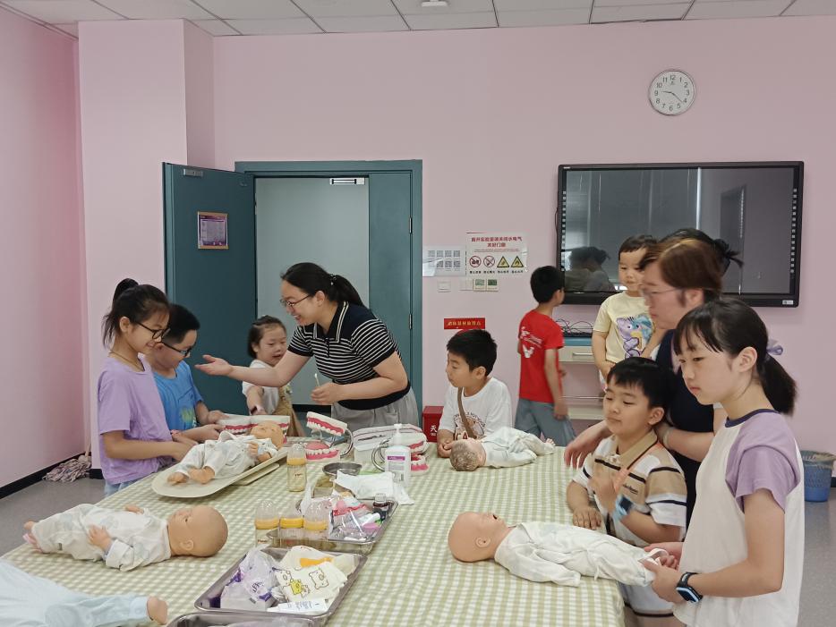 活动当天,大家首先于学海楼C455室集合拍摄集体照,留下了美好纪念。随后,邢颖老师带领孩子们前往实验中心,开展了一场生动有趣的科普教育。孩子们学习了听诊器的使用方法、心肺复苏的基本步骤,以及正确的刷牙和洗手方法,在体验中收获了实用的健康知识增强了孩子们主动健康的意识