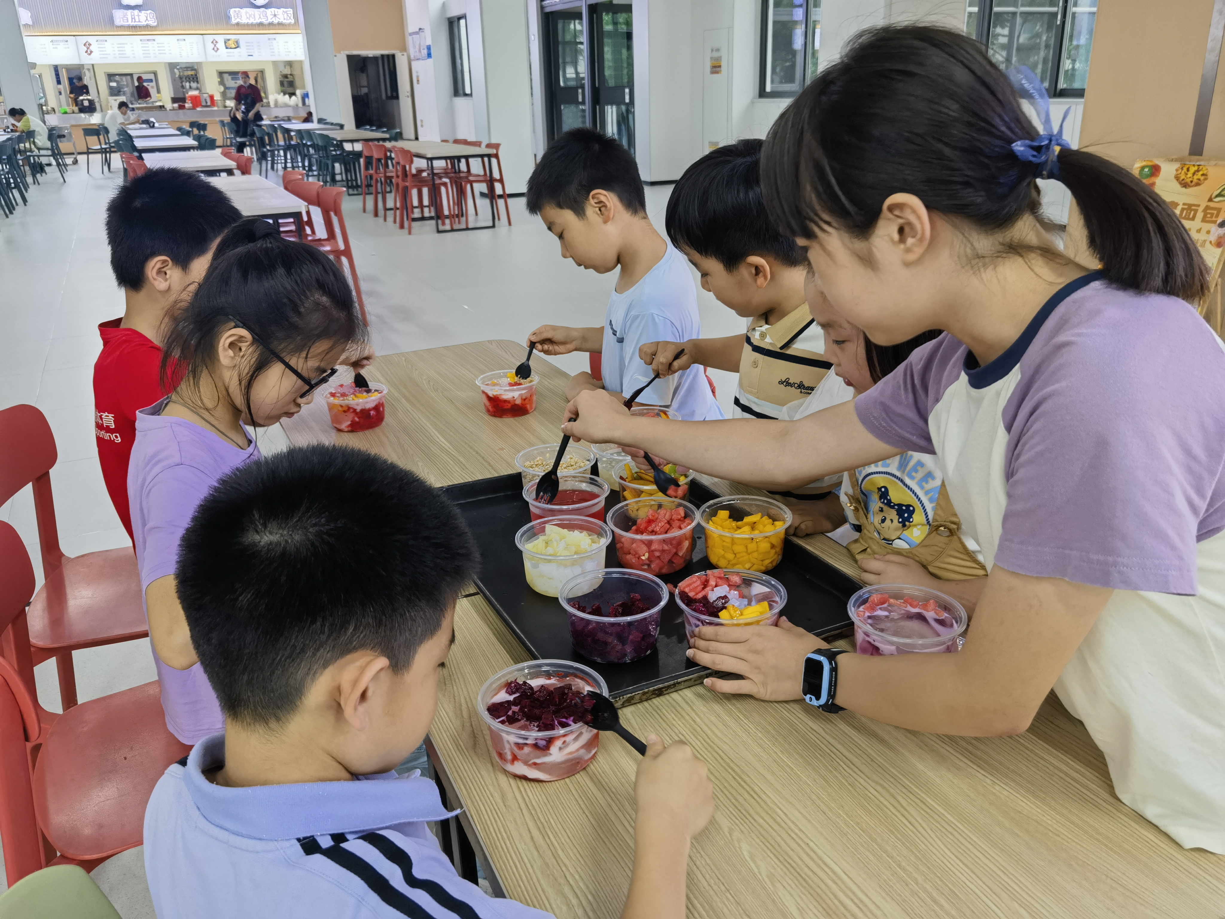 下午的活动同样精彩纷呈。家长和孩子们在食堂进行亲子互动,一起亲手制作小饼干和冰粉。孩子们把亲手制作的饼干包装好给家长们进行分享,这一温馨的互动不仅让孩子们体验了劳动带来的成就感,更让他们在分享中学会感恩。活动最后,任子琪老师准备了点心、动画片和书籍,为孩子们的愉快旅程画上了句号。
